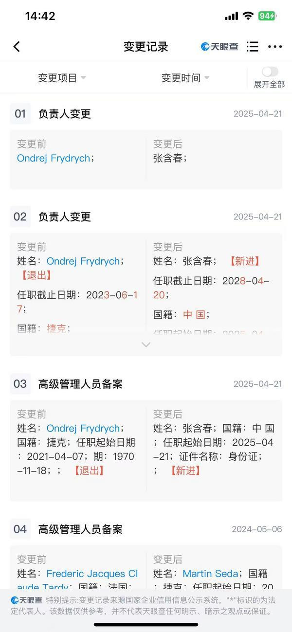 中国网财经4月23日讯天眼查最新信息显示,捷信消费金融进行了负责人变更,负责人已经由OndrejFrydrych(捷克籍)变更为张含春。
